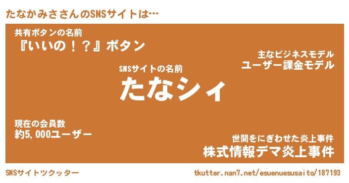 | 肩書あだ名 | 『たなかみさ御曹司』『たなかみさ塾長』 |