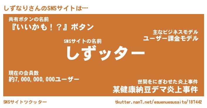 | 男性向けラノベタイトル風あだ名 | 『シズナリアートオンライン』 |