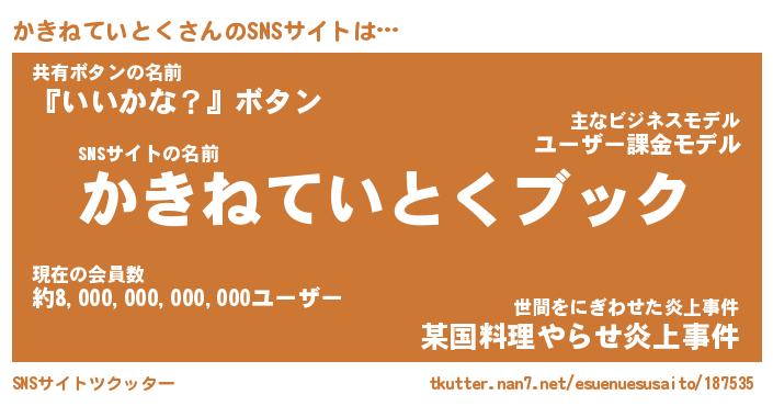 | ツイッター | かきねていとくさんのツイッターID『namakemono_man』 |