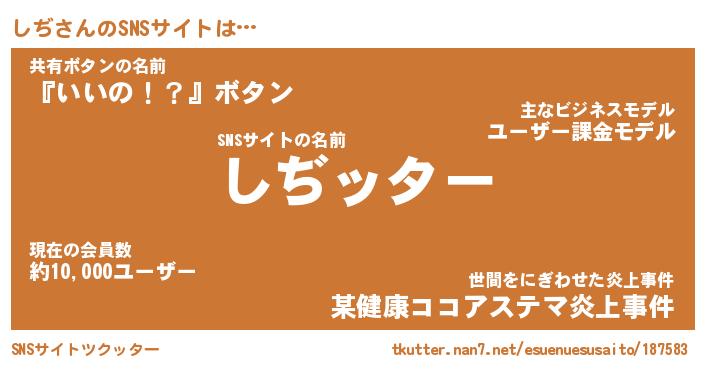 | 伝説のあだ名 | 『封印されしスナイパーしぢ』 |