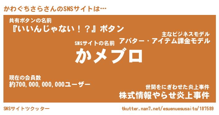 | 肩書あだ名 | 『かわぐちさら御曹司』 |