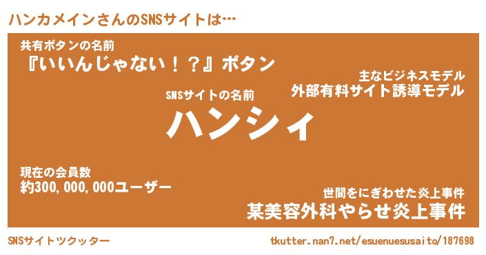 | ヘコむあだ名 | 『ハンにゅー』『牛乳』『ハン太郎』 |