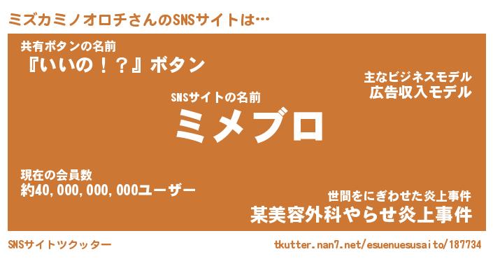 | 男性向けラノベタイトル風あだ名 | 『ミズカミノオロチアートオンライン』 |