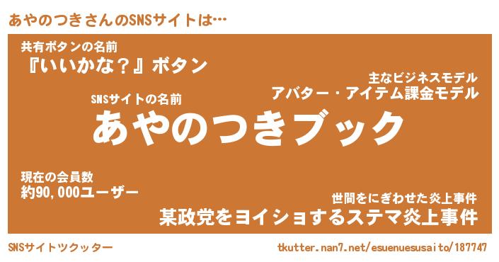 | ツイッター | あやのつきさんのツイッターID『dendenmushi_star』 |
