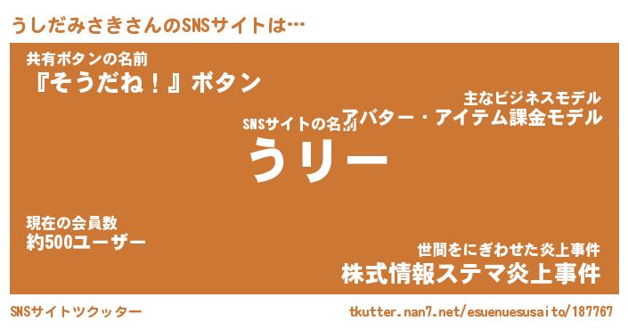 | 胡散臭い通販商品みたいなあだ名 | 『モテモテ間違いなし水晶球…その名も「うしだみさき」』 |