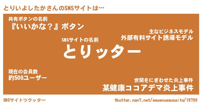 | 肩書あだ名 | 『とりいよしたか社長』 |