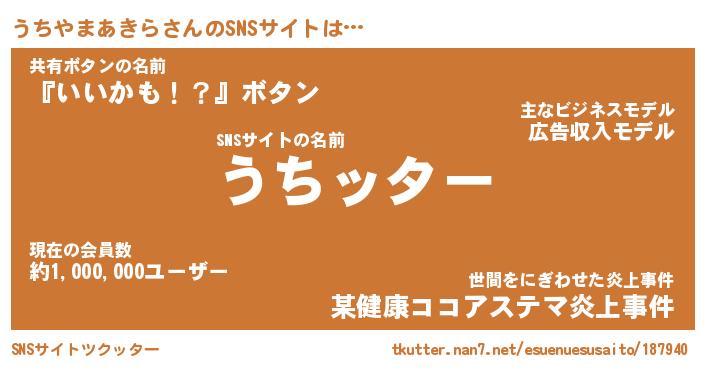| 肩書あだ名 | 『うちやまあきら店長』 |