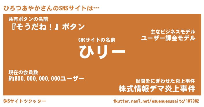 | 胡散臭い通販商品みたいなあだ名 | 『モテモテ間違いなし霊験あらたかなお札…その名も「ひろつあやか」』 |