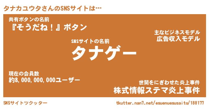 | 伝説のあだ名 | 『伝説のスナイパータナカユウタ』 |