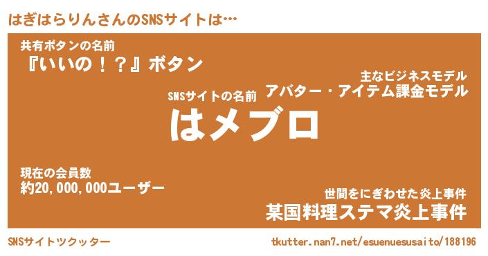 | ヘコむあだ名 | 『はぎもー』『レバニラ』『はぎお』 |