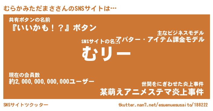 | 胡散臭い通販商品みたいなあだ名 | 『モテモテ間違いなし水晶球…その名も「むらかみただまさ」』 |