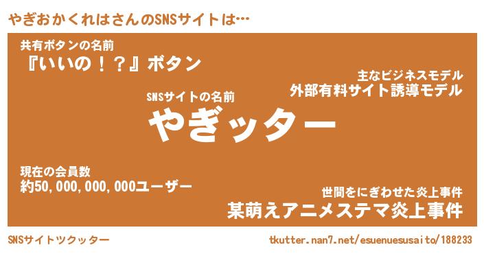 | 伝説のあだ名 | 『封印されしスナイパーやぎおかくれは』 |