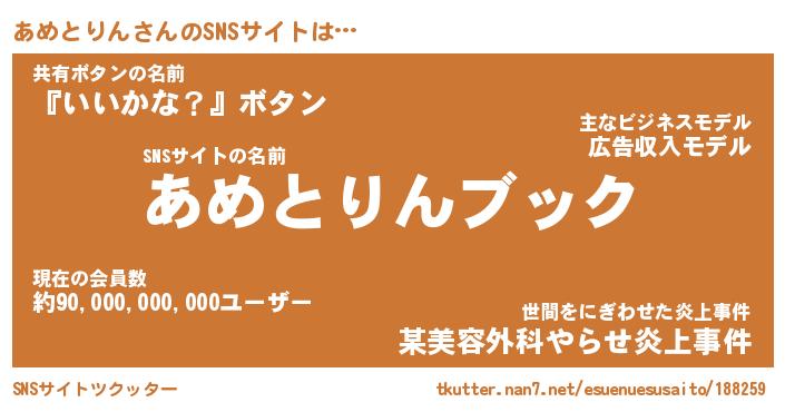 | 胡散臭い通販商品みたいなあだ名 | 『億万長者になれるブレスレット…その名も「あめとりん」』 |