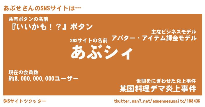 | 肩書あだ名 | 『あぶせCEO』『あぶせ国家主席』 |