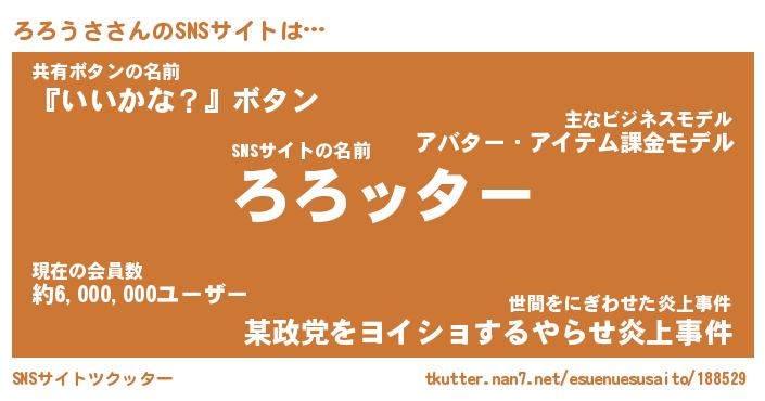 | 意味不明あだ名 | 『ペロリンろろうさ』『永久保存ろろうさ』 |