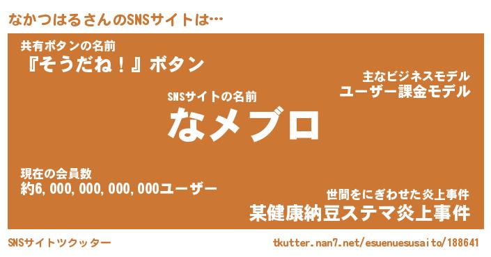| ファンタジー風あだ名 | 『ナカフェル』『エターナルナカツハルー』 |