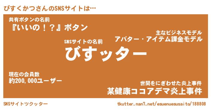 | ヘコむあだ名 | 『びすにゅー』『レバニラ』『びすお』 |