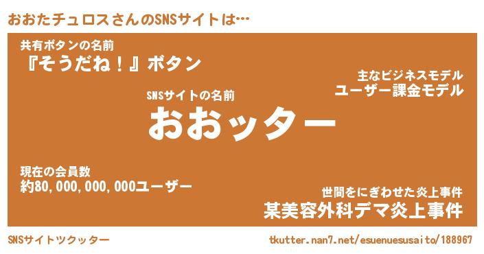 | ツイッター | おおたチュロスさんのツイッターID『fukuyoka_kun』 |