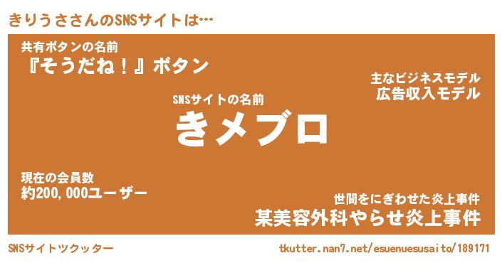 | 意味不明あだ名 | 『ペロリンきりうさ』『永久保存きりうさ』 |