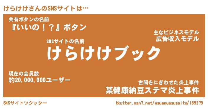 | ヘコむあだ名 | 『けらにー』『豆乳』『けらっちょ』 |