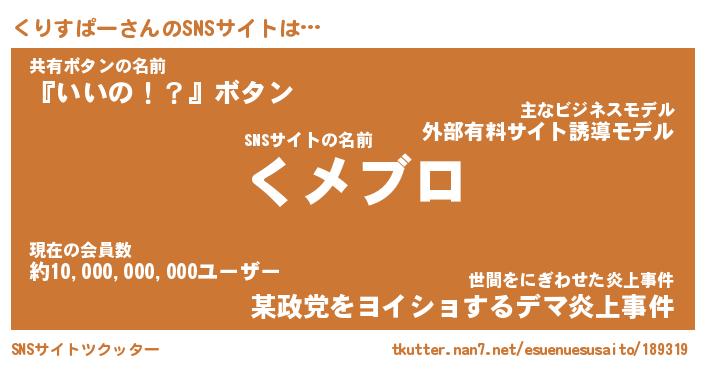 | 肩書あだ名 | 『くりすぱー社長』『くりすぱー総理大臣』 |