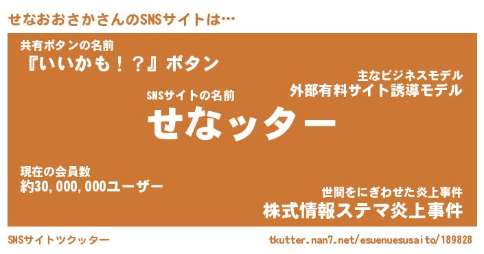 | 男性向けラノベタイトル風あだ名 | 『セナオオサカアートオンライン』 |