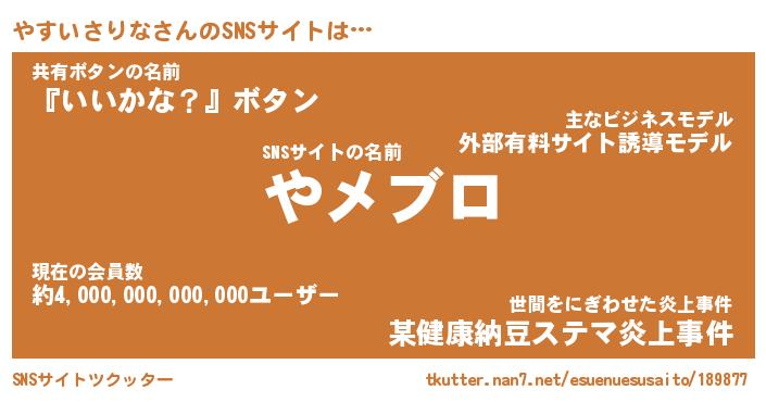 | 男性向けラノベタイトル風あだ名 | 『ヤスイサリナアートオンライン』 |