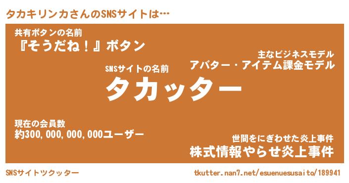 | 胡散臭い通販商品みたいなあだ名 | 『億万長者になれる霊験あらたかなお札…その名も「タカキリンカ」』 |