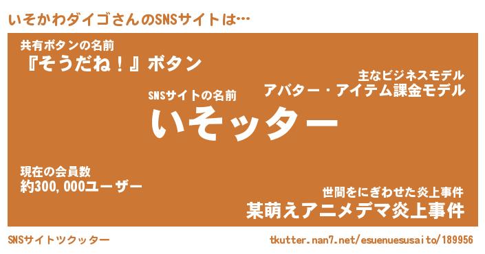 | 胡散臭い通販商品みたいなあだ名 | 『億万長者になれる霊験あらたかなお札…その名も「いそかわダイゴ」』 |