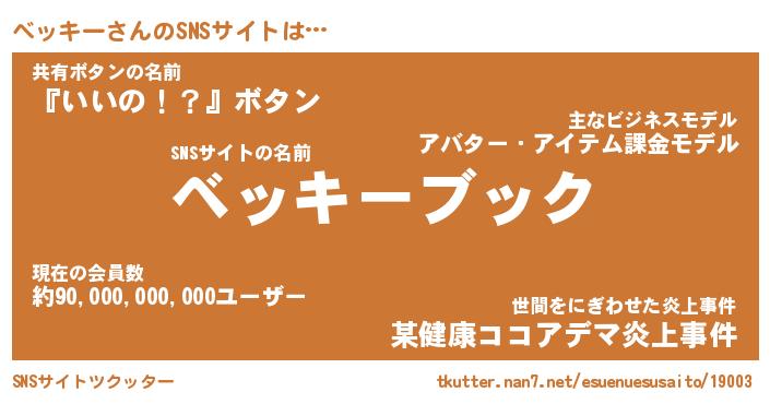 | 意味不明あだ名 | 『ペロリンベッキー』『永久保存ベッキー』 |