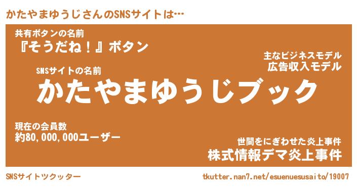 | 肩書あだ名 | 『かたやまゆうじ御曹司』 |
