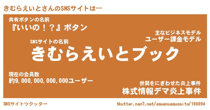 | 胡散臭い通販商品みたいなあだ名 | 『億万長者になれる霊験あらたかなお札…その名も「きむらえいと」』 |