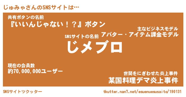 | 肩書あだ名 | 『じゅみゃ御曹司』『じゅみゃ総理大臣』 |