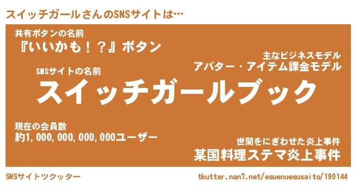 | 胡散臭い通販商品みたいなあだ名 | 『億万長者になれる霊験あらたかなお札…その名も「スイッチガール」』 |