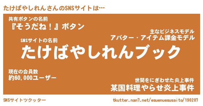 | 肩書あだ名 | 『たけばやしれんCEO』 |
