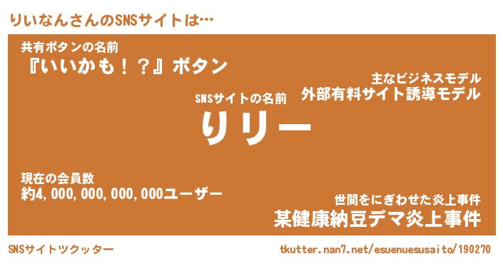 | 意味不明あだ名 | 『ペロリンりいなん』『永久保存りいなん』 |