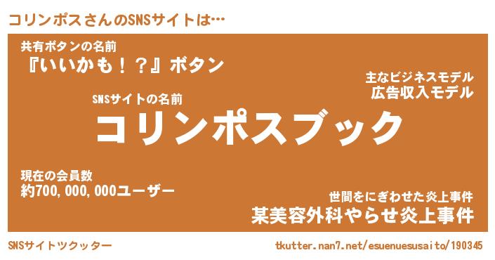 | ツイッター | コリンポスさんのツイッターID『namakemono_star』 |