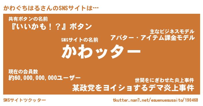 | ヒーロー風カッコイイあだ名 | 『スーパーカワグチハル』『暗黒騎士カワ』 |
