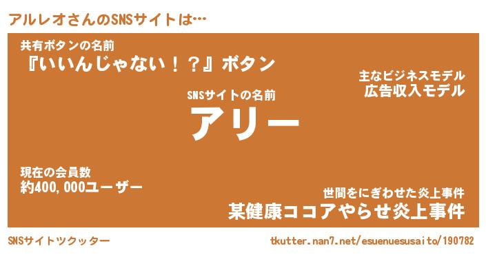| 意味不明あだ名 | 『ペロリンアルレオ』『永久保存アルレオ』 |