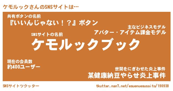 | 肩書あだ名 | 『ケモルックCEO』『ケモルック総理大臣』 |