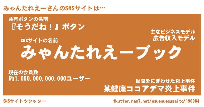 | 肩書あだ名 | 『みゃんたれえーCEO』 |
