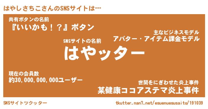 | 胡散臭い通販商品みたいなあだ名 | 『億万長者になれる水晶球…その名も「はやしさちこ」』 |