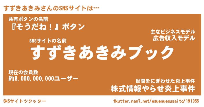 | 胡散臭い通販商品みたいなあだ名 | 『億万長者になれるブレスレット…その名も「すずきあきみ」』 |