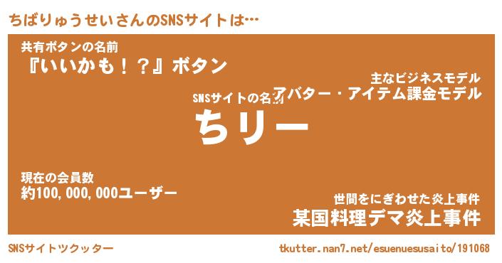 | ポケモン風あだ名 | 『チバチュウ』『チバリダネ』 |