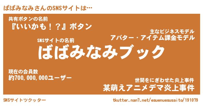 | 男性向けラノベタイトル風あだ名 | 『ババミナミアートオンライン』 |