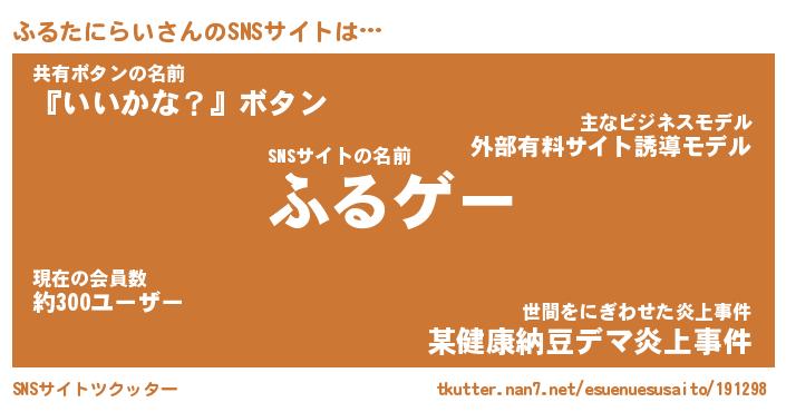 | 肩書あだ名 | 『ふるたにらい社長』『ふるたにらい班長』 |