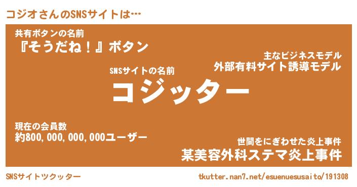 | 胡散臭い通販商品みたいなあだ名 | 『億万長者になれる霊験あらたかなお札…その名も「コジオ」』 |