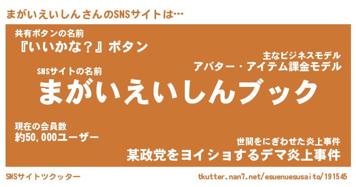 | 男性向けラノベタイトル風あだ名 | 『マガイエイシンアートオンライン』 |