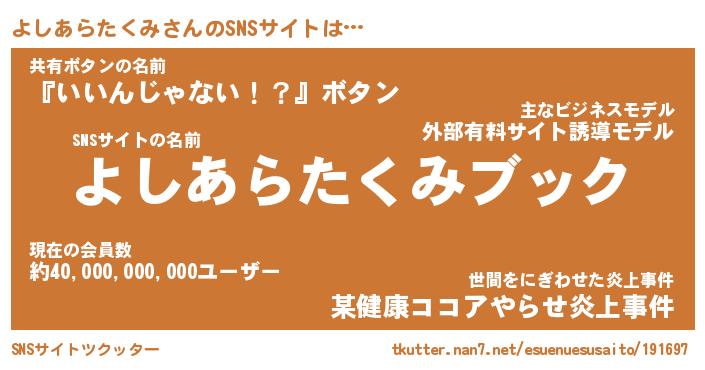 | 胡散臭い通販商品みたいなあだ名 | 『億万長者になれる霊験あらたかなお札…その名も「よしあらたくみ」』 |