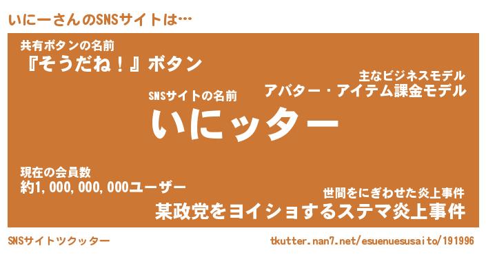 | 肩書あだ名 | 『いにーCEO』『いにー総理大臣』 |